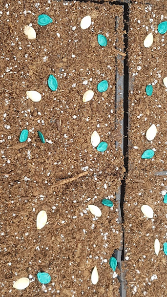 Step 1: Plant the pumpkin, ornamental corn, and squash seeds in the greenhouse.